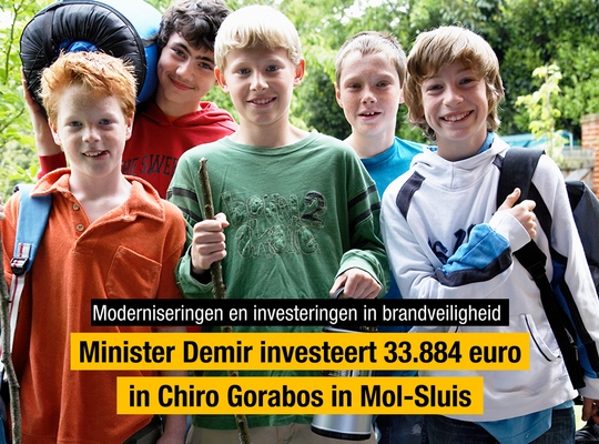 “Voor onze gemeente is er goed nieuws voor Chiro Gorabos uit Mol-Sluis”, zegt Schepen voor Jeugd en Toerisme Hans De Groof (N-VA), “Zij ontvangen een subsidie van 33 884 euro voor moderniserings- en brandveiligheidswerken.”